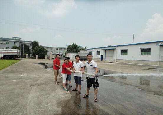 湖南爾康湘藥制藥員工在進行消防水管的演練