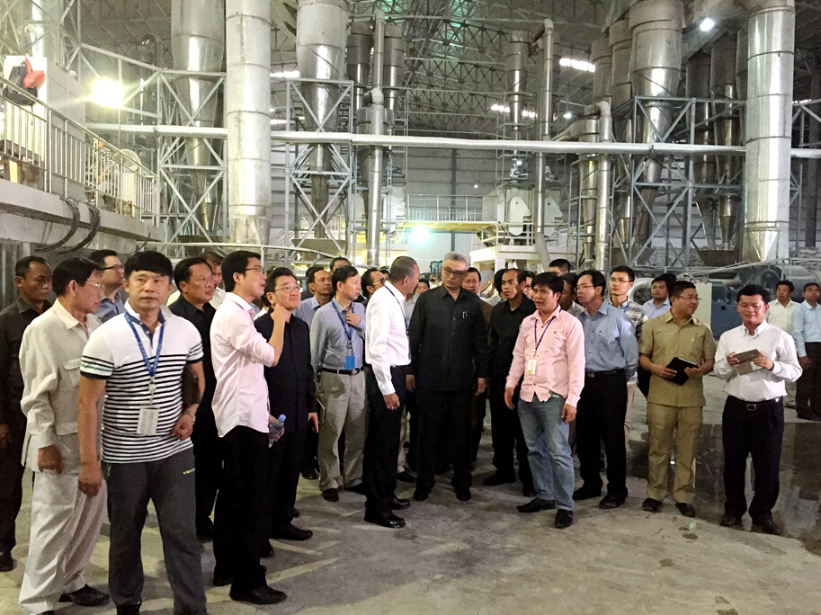 座談會結(jié)束后,Aun Porn Moniroth部長一行在程云等人的陪同下參觀了爾康淀粉生產(chǎn)車間、化驗室等地。在參觀過程中,他不停詢問產(chǎn)品出口和研發(fā)情況,當(dāng)部長得知產(chǎn)品全部外銷時,他不斷點頭肯定?!案兄x爾康為柬埔寨人民做出的貢獻?!眳⒂^結(jié)束后,Aun Porn Moniroth部長對公司的生產(chǎn)發(fā)展給予了肯定,并表示將支持爾康在當(dāng)?shù)氐陌l(fā)展。