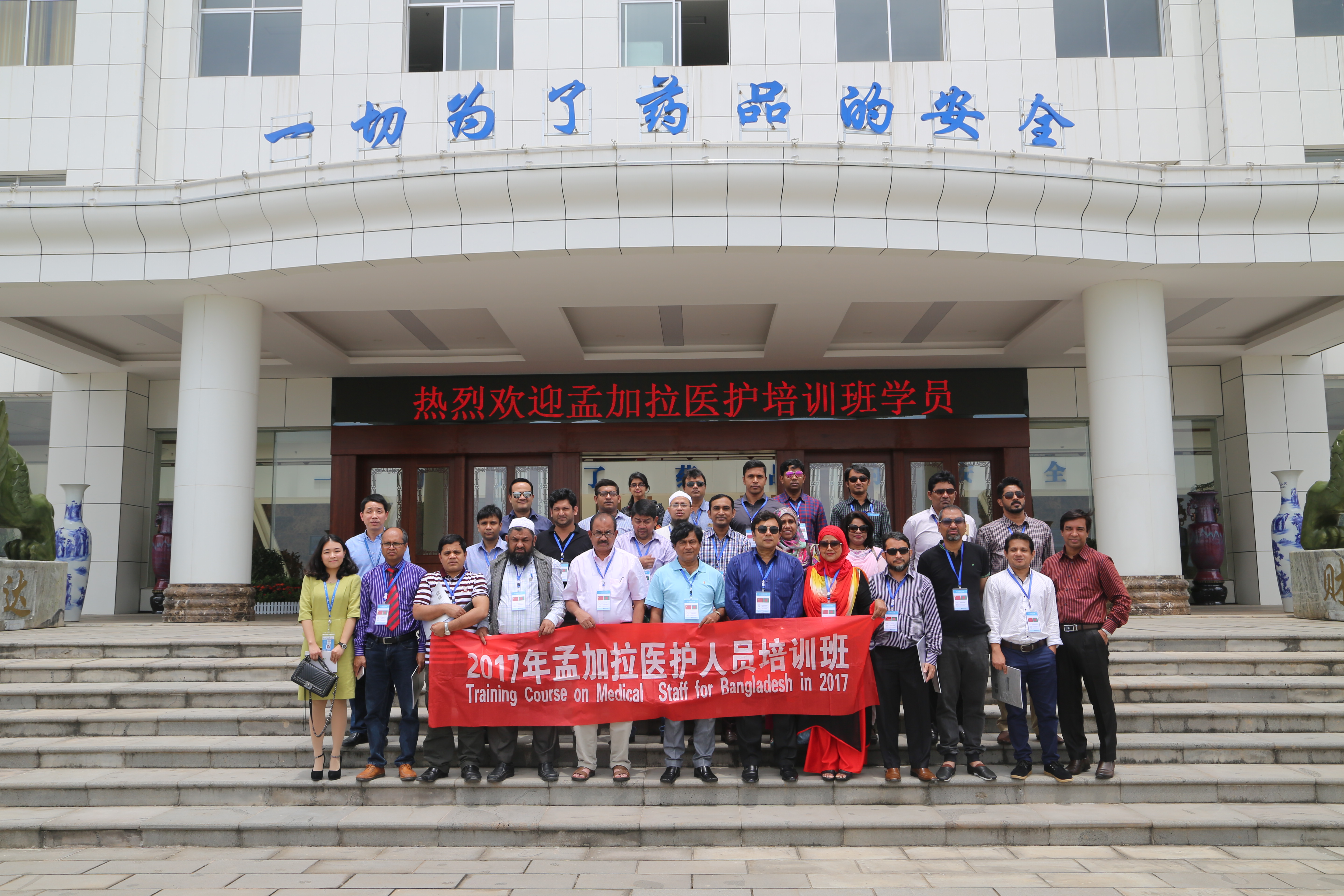 孟加拉國(guó)醫(yī)護(hù)人員培訓(xùn)班學(xué)員在爾康制藥大樓前合影