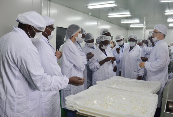 培訓班學員參觀了爾康制藥的總部辦公大樓以及部分生產車間,在技術人員的指導下,學習了爾康制藥的相關生產檢驗設備的操作流程,詳細詢問和了解公司很多產品,特別是淀粉膠囊的相關知識。肯尼亞學員看到制作淀粉膠囊的木薯圖片后,興奮地說到:“我們肯尼亞也有這種木薯,肯尼亞物產豐富,氣候適宜,國家渴望發展,希望爾康制藥以后也到我們國家去投資生產?!?/span>