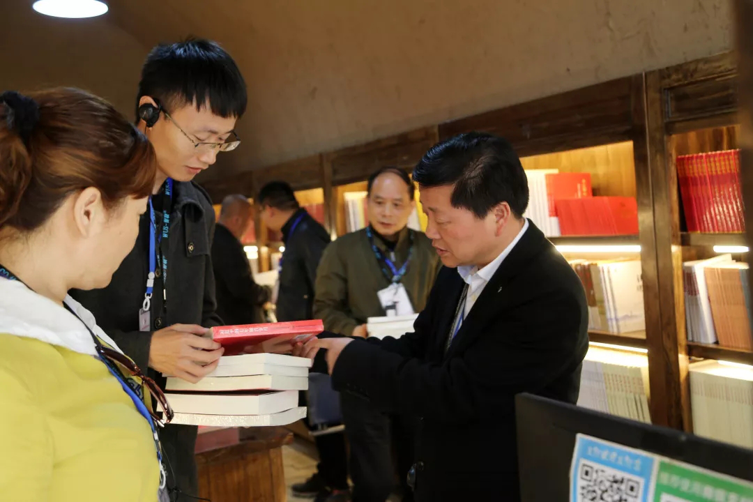 集團董事長帥放文(右一)和黨總支書記楊杰(右二)探討加強企業黨建