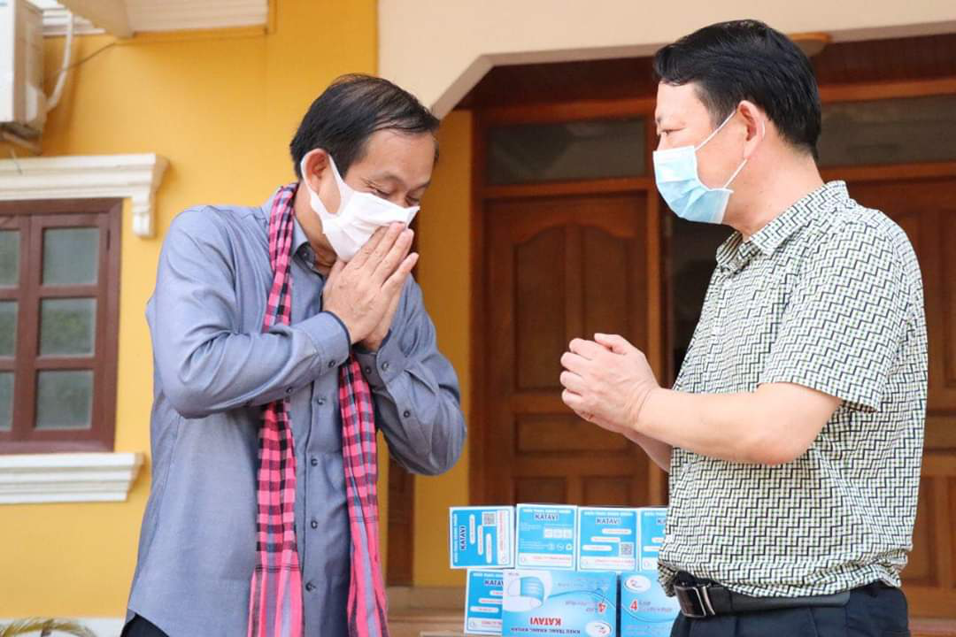 4月22日下午,爾康柬埔寨公司向柬埔寨馬德望省政府捐贈5000只口罩等防疫物資。馬德望省長原羅達和柬埔寨公司副總經理楊建平出席捐贈儀式。