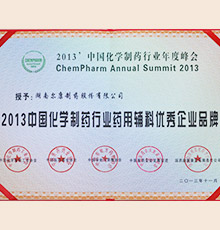 2013年中國化學(xué)制藥行業(yè)藥用輔料優(yōu)秀企業(yè)品牌