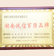 2013年湖南誠信百強品牌
