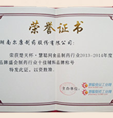 2014中國化學(xué)制藥行業(yè)藥用輔料優(yōu)秀企業(yè)品牌
